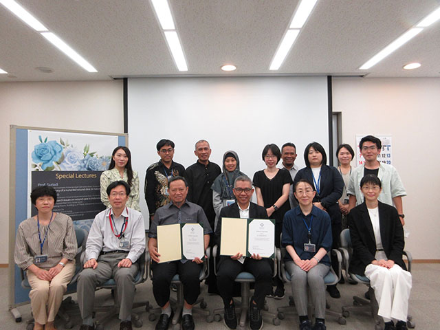 修了生のProf. Suriadi、Dr. Haryanto、Dr. Imran、Dr. Supriadiと共同研究に関する打ち合わせを行いました。部局間協定のもと、International seminarにおいて、大江真琴教授が「Prospective wound management of various types of health workers」、向井加奈恵准教授が「Growth up of the wound healing process based on a histological perspective」と題して講演をしました。